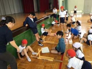 水曜日は全学年で体力調査を実施しました。縦割り班毎に回って、挑戦して行きました。低学年の子供も上学年からやり方を教えて貰ったりカウントして貰ったりと、仲良く回って行きました。少し経つと個票が来ます。