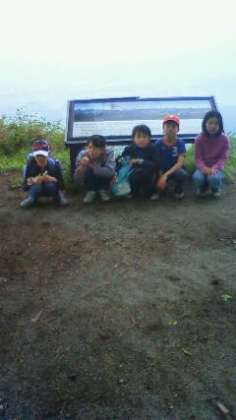 登山開始2時間で山頂到着。みんな頑張りました。