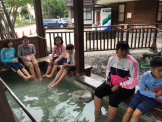 源泉の次は、足湯に浸かりました。やや熱めの湯にじっくり足を漬けて、ハイキングの疲れを取りました。