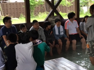 足湯が気に入ったらしく、楽しそうに話しながら浸かっていました。