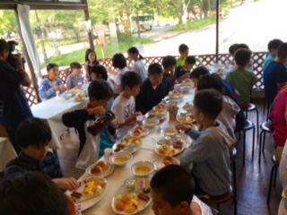 朝食も見事に平らげました。これから部屋の片付けをして閉園式に臨みます。