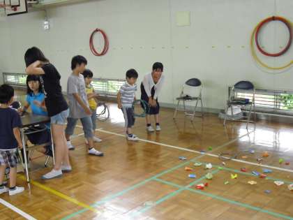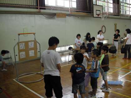 6年生がお店を開き、1年生を招待しました。スタンプラリーをしながら、6種類のお店をまわるという内容です。工夫したお店と、丁寧につくった景品に、1年生も大喜びでした。