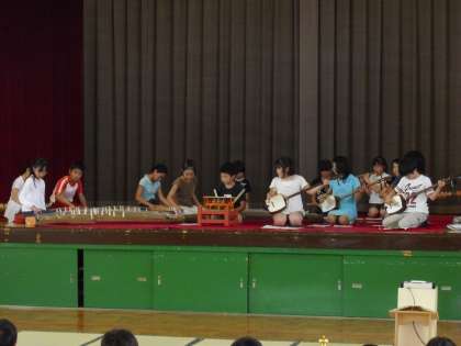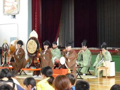 6月24日(木)伝統音楽鑑賞教室が行われました。5校時に玉代雅楽会の方々による演奏を全校で鑑賞し、6校時は5年生、6年生がそれぞれに音楽の時間の成果を発表しました。5年生、6年生の演奏に対しては、玉代雅楽会の方から、おほめの言葉をいただいたり、改善点について話していただいたりしました。