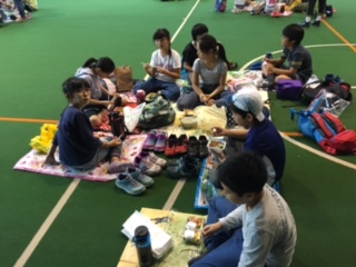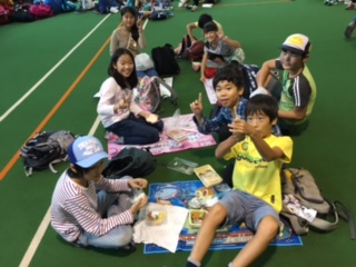 なかのビレジに到着。屋根付き広場でお弁当を食べました。朝が早かったせいか、みんな美味しそうに平らげていました。