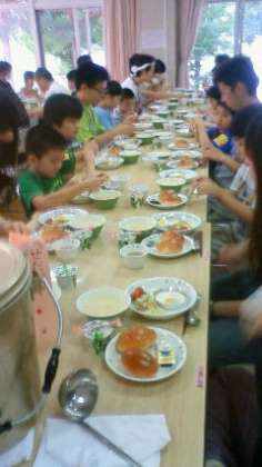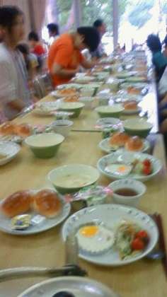 今日は移動教室最後の日。元気に朝の会をすることがてきました。そして、朝食です。宿舎で最後の食事です。しっかり食べます。