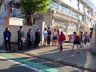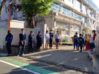 朝8時位から15分間、桜木中学校の生徒さんや先生が来て本校の正門に立ち、本校の代表委員の子供達と一緒にあいさつをしてくれたのです。懐かしい先輩がくる日もあり、子供達は照れながらも嬉しそうでした。