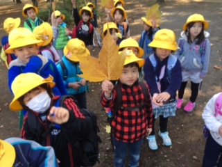 11月7日月曜日の午前中、1・2年生が一緒に羽根木公園まで秋探しに行きました。一番の目当てであったドングリ拾いも無事に出来て、のんびりと森林浴をして来ました。大きなカエデの葉っぱを嬉しそうに拾う子供、かわいい木の実を見つけて拾う子供、ドングリ拾いを集中して行う子供等々、それぞれがこだわりながら楽しそうでした。