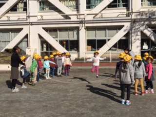 12月2日金曜日の朝は校庭で大縄集会をしました。1年生は縄を回さない跳び方を、2年生以上は回線跳びをしました。クラスみんなで息を合わせて頑張りました。