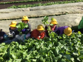今日は、1・2年生と仲よし学級の子供達が小松菜採りに出かけました。学校から約1時間かけて桜新町の秋山農園まで歩いて行きました。