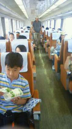 豪徳寺から電車の旅が始まりました。北千住までは特にマナーに注意です。北千住からは専用列車。本格的な列車の旅です。お弁当を食べて自由時間を過ごすうちに日光に到着です。