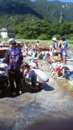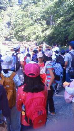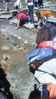 バスで湯元に着くと温泉の源泉を見学して湯滝までハイキングです。
