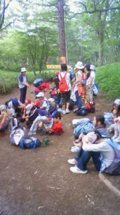 泉門池を出て戦場が原を歩いて赤沼分岐点で一休みです。その後、シャクナゲ橋でジュースを飲んで元気回復。