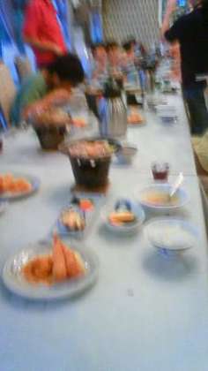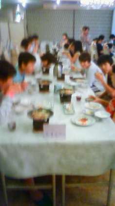 2日目の夕食は、ハイキングの疲れを吹き飛ばすためにたくさん食べます。元気に「いただきます」をしました。今夜は肝試しをして、「おやすみなさい」になります。