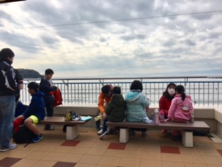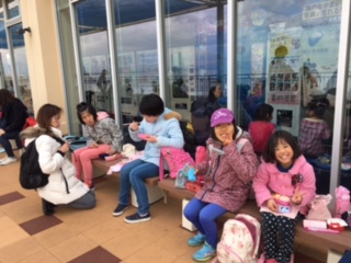 ショーを見た後は、海を見ながらお弁当を食べました。遠足なのでおやつもあり、嬉しそうに食べていました。