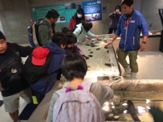 その後はグループ毎に館内を回りました。タッチプールと言って、実物の魚や海の生物に触れて楽しむコーナーが人気でした。