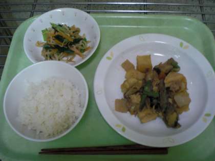 新学期が始まりました。今年度のオリンピック給食は『世界』の伝統の郷土料理などを紹介していきます。また、毎月1回「バースデー給食」の日を予定していますので、楽しみにしていてください。今日の給食の‘いりどりに’とは、九州地方でよく知られている郷土料理です。‘がめ煮’とも呼ばれています。‘いりどりに’に使われている、たけのこは、春が旬の野菜です。旬の野菜は栄養がたくさん含まれていて、味もおいしくなっているのが特徴です。
