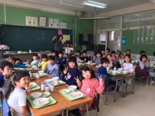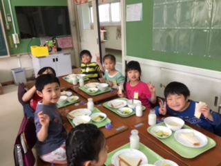 4月10日月曜日から、1年生も完全給食が始まりました。今日の献立は、ジャムサンド、クリームシチュー、サラダ、牛乳でした。ほとんどのお子さんが、完食出来ました。(サラダが少し苦手なお子さんもいました。)みんな「おいしい。」とニコニコ顔でした。明日は焼きそばだと伝えると歓声が上がりました。頼もしい1年生です。