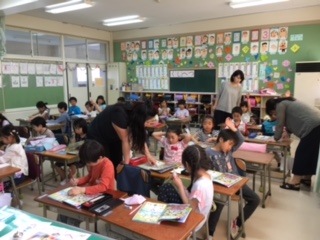 入学式から10日目の1年生の授業風景です。みんなしっかり話を聞いて、数えたりなぞったり、かいたりと一生懸命でキラキラしてしています。
