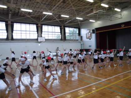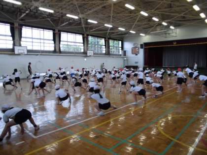 突然の雷雨・・・よりも大きな声が体育館から響いてきます。