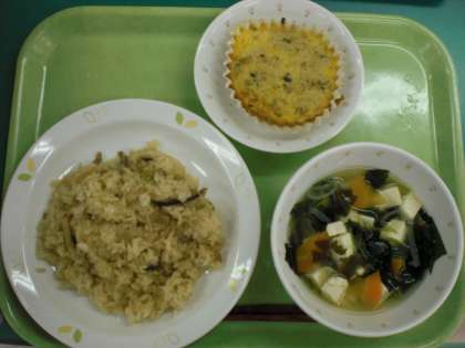 「ちゅうかおこわ、和風たまごやき、すまし汁、牛乳」です。