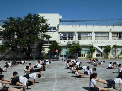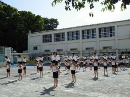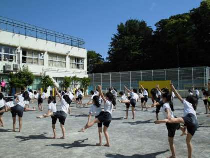 朝の全校練習から始まり、午後は5,6年生の練習です。