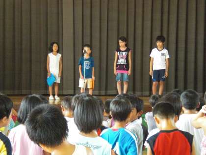 今日から2学期のスタートです。夏休みの間にいちだんとたくましくなった子どもたちが登校し、学校に活気が戻ってきました。始業式では、2学期にがんばりたいことを発表してもらいました。2学期の子どもたちの活躍が楽しみです。
