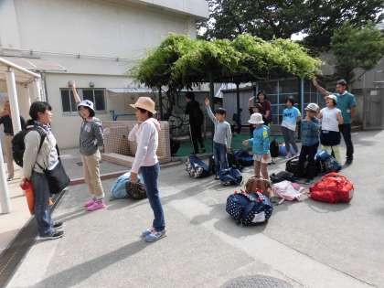 子どもたちは、くたくたに疲れながらも、大きな荷物を背負って歩き、先生の話をしっかりと聞いていました。