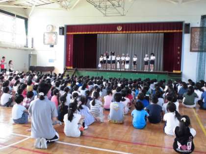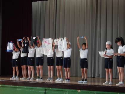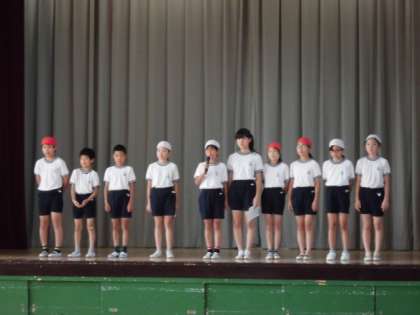 運動委員会の人たちが、再来週から始まるプール学習の説明をしてくれました。実例もあり、とてもわかりやすかったです。