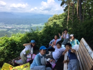 8時半になかのビレッジを出発して11時には雨乞山の頂上に到着。かなりの難解な山道をみんなで励まし合いながら登りました。頂上は沼田市すべてが見渡せる絶景でした。それまでの苦しさもすっと消え去りました。