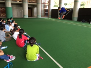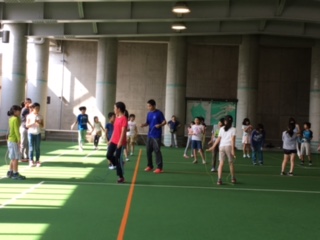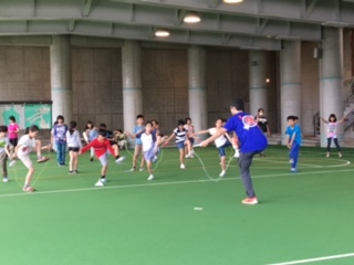 その後、今回の補助員さんの方が、世界に誇る縄跳びパフォーマーなので、模範演技を披露していただきました。見たこともない技の数々に大感激でした。最後は技の伝授タイムでした。