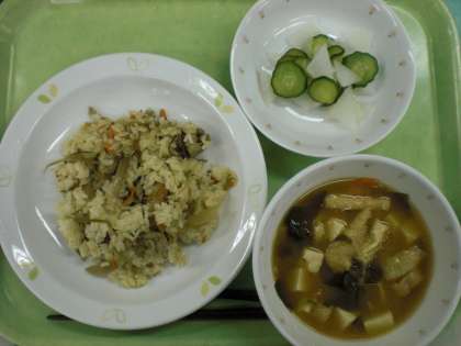 「ぶたにくとごぼうのごはん、みそしる、だいこんのあまずかけ、牛乳」です。