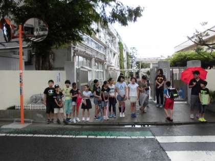 今週は5年生が正門の前に立ってあいさつ運動をしています。