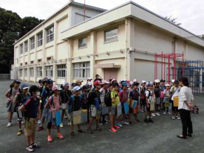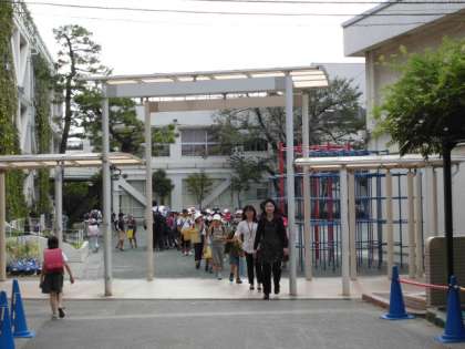 校庭で朝の会をやっていましたが、とても立派な態度でした。