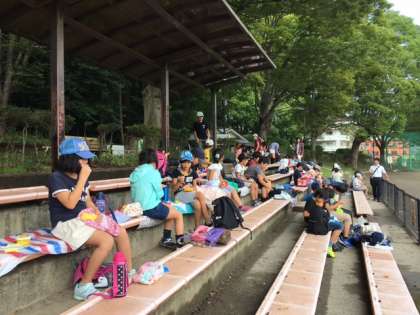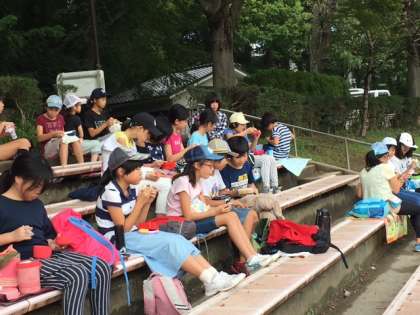 昼食は、近くの三池公園のサッカー場観客席で食べました。みんな美味しそうに食べていました。