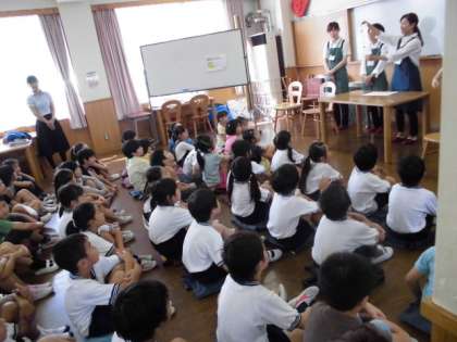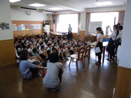 今日は経堂図書館から4名の方が来校してくださって、出張お話会が開催されました。