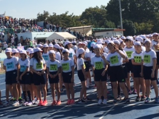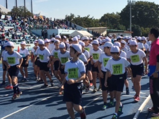 10月26日快晴、今日は6年生対象に砧総合運動場で連合運動会が開催されました。毎年区内62校を三分割して行われます。