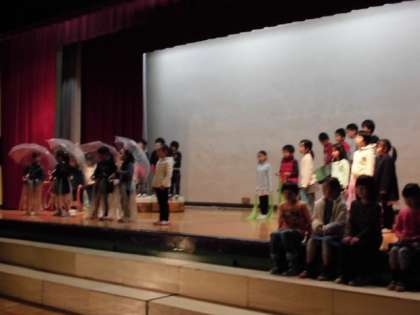 スポットライトを浴びたり、衣装を着けたりとだんだん本番に近づいてきました。せりふもほぼ完璧です。