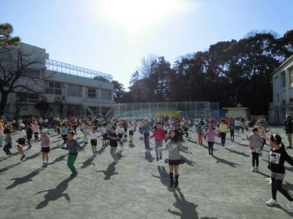 今日からなわとび週間が始まりました。中休みに元気よくみんなでなわとびをやっています。進級できるようにがんばって練習しましょうね。