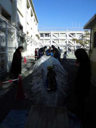 今日は1年生の順番の日で、雪の滑り台を楽しみました。中休みも昼休みも長い行列ができていました。まだできる日はありますので楽しみにしていてくださいね。