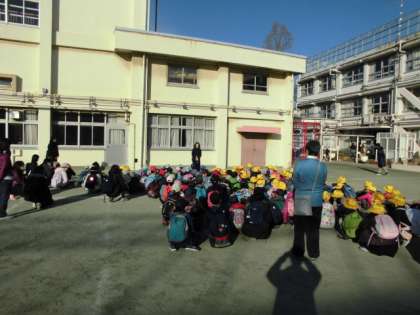 よい天気に恵まれて、1,2年生、仲よし学級が小松菜とりに出発しました。昨日の給食では小松菜を食べましたが、実際にどんな小松菜が取れるか楽しみですね。
