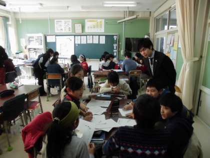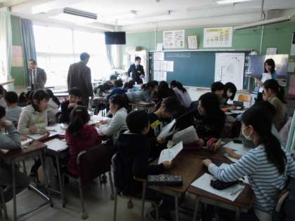 日本弁護士会の現役弁護士がゲストティーチャーとして5,6年生のところに来てくれて、事例をもとに、ディスカッションについて教えてくれました。