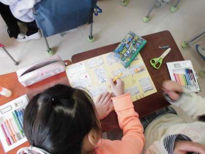 今日はたてわり活動で来月卒業する6年生へのメッセージカードを作成しました。今までたくさんお世話になった6年生が卒業してしまうのは少し寂しいですが、メッセージカードを見て喜んでくれるといいですね。