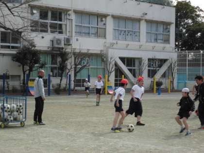 今日はベルディーからコーチが来て下さり、楽しくサッカーを教えてくれました。校庭では、楽しくサッカーをやっている声が響き渡りました。
