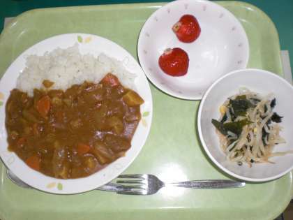 「カレーライス、わふうサラダ、くだもの、牛乳」です。