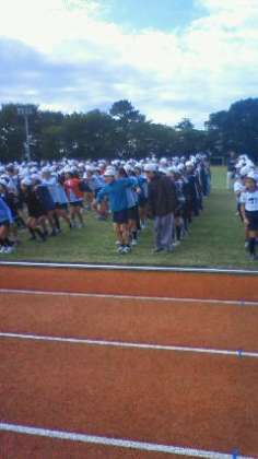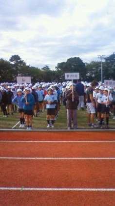 今日は好天に恵まれ予定どおり連合運動会が始まりました。開会式、準備運動と進みました。そして、競技が始まりました。