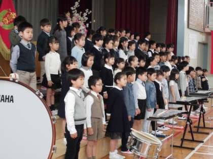 1年生のみなさん。入学おめでとうございます。在校生はみなさんが入学してくるのを楽しみにしていました。これから一緒に楽しくお勉強をしたり、遊んだりしましょうね!!