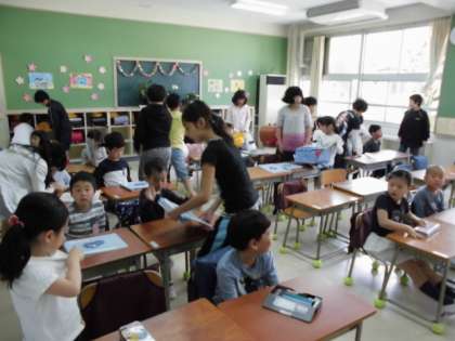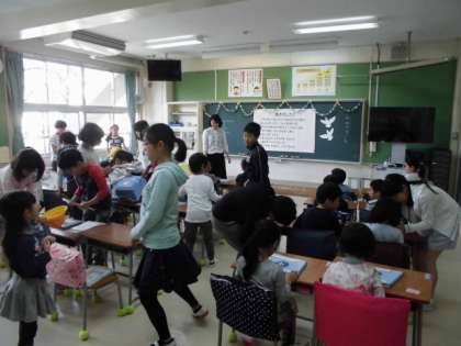 1年生のお世話係として6年生ががんばっています。まだまだ何もわからない1年生ですが、6年生のやさしいお兄さん、お姉さんがいろいろ教えてくれますので心配はいりません。