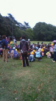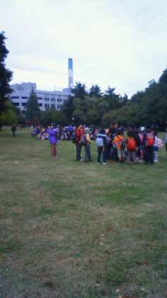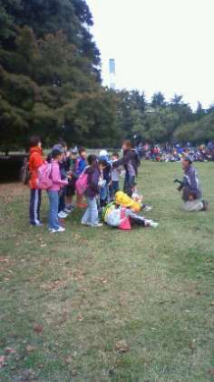 曇りですが、雨の心配は無いようです。少し寒いのですが、元気に砧公園に到着です。写真を撮ってから、班毎にラリーに出発します。