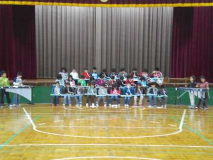 10月28日(木)の音楽集会は、全校で「君をのせて」を歌ったあと2年生が「家路」を演奏しました。音楽の時間に練習していた曲ですが、鍵盤ハーモニカと鉄琴を使ってお互いに音を聞きあいながら演奏するよう努力しました。