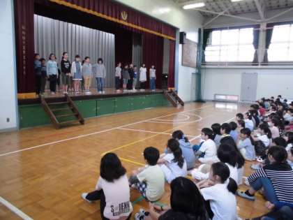 今日は児童集会があり、委員会の紹介がありました。どの委員会も世田谷小学校をよくするために働いてくれる頼りになり人たちです。